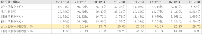 刘建顺退休后,潘杰接任董事长,在此前提价影响的延续下,2021年的营收和净利润增幅分别达到23.2%和45.49%。仅次于2017年的60.85%和50.53%。林纬奇在2021年中途接替潘杰,这份业绩很难算到他的头上,他上任后,片仔癀已经疲态尽显,2022年总营收86.94亿元,同比增长仅为8.38%,为近8年新低,净利润24.76亿元,同比增幅更是低至1.66%,同样为近8年最低,甚至为上市以来2009和2006及2004这三年亏损以外的新低。在这一年,片仔癀的毛利率由上一年的50.72%下滑至45.64%,下降了5.08个百分点,净利率也由30.73%下滑至29.02%,下滑了1.71个百分点。