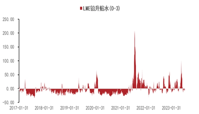 图6:伦铅Cash/3M贴水8.25美元/吨反映现货资源维持平衡