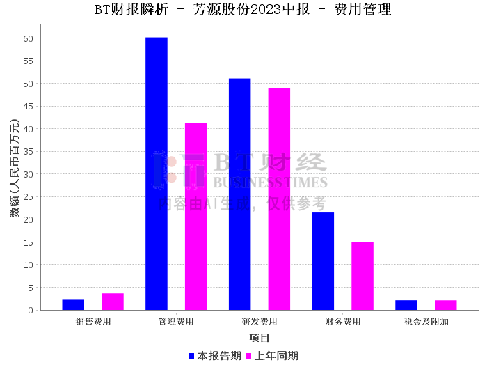 在2023年中报中,芳源股份的营业收入达到14.27亿元,较上年同期的9.46亿元增长50.81%,这主要得益于下游新能源汽车领域及动力电池产业的持续增长,推动了公司产品的销售量同比增加。然而,由于公司的营业规模扩大,导致营业成本从上年同期的8.4亿元增加到本期的12.92亿元。同时,由于募投项目陆续验收、转固、调试,折旧费用、能源消耗、辅料费用和人工成本等管理费用增加,以及可转换公司债券计提的利息费用化增加,使得公司的营业利润为-2.38千万元,较上年同期的-5.15百万元有所增加。