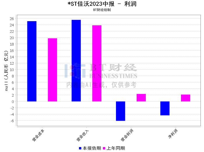 在盈利能力方面,*ST佳沃的营业收入从上年同期的23.86亿元增加到本报告期的25.58亿元。然而,营业利润从上年同期的2.36亿元减少到本报告期的-6.08亿元。净利润从上年同期的2.15亿元减少到本报告期的-4.36亿元。归属于上市公司股东的扣除非经常性损益的净利润从上年同期的1.52亿元减少到本报告期的-3.69亿元,调整后的增减幅度为-343.36%。