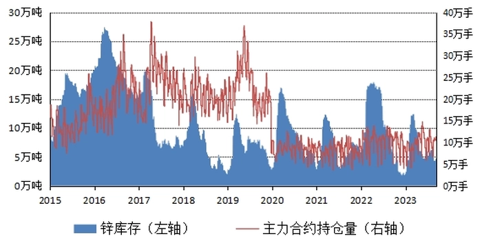 沪锌库存和盘面持仓量 |