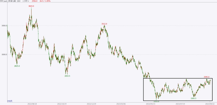 8月至9月,沪锌二次探底位置较此前明显回升,已逐步走出下跌通道,伦锌价格向上挑战2200-2600美元/吨区间上沿压力位。