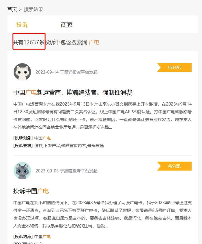此外,中国广电的服务水平也被广大网友“群起而攻之”。在黑猫投诉、微博、贴吧等平台上,不少用户都反馈中国广电各地网点服务态度恶劣、存在诱导消费者办理业务、客服及营业厅人员业务水平差等问题。在黑猫投诉中搜索关键字“广电”,可查询出12637条投诉结果,其中就有不少用户反馈:“中国广电电话号注销后退费一直拖延,广电退费人员服务态度太差了。”
