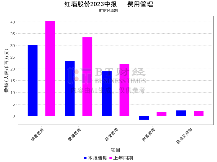 首先,从财务费用来看,红墙股份的财务费用同比减少了190.94%,这主要是由于本期经营性贷款大幅减少所致。这表明公司在资金管理上的效率提高,有效地降低了财务成本。同时,公司的管理费用同比减少了30.52%,主要原因是通过降本增效导致本期费用开支降低。这反映出公司在内部管理上的优化,提升了运营效率。