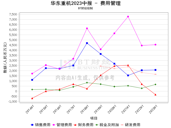 在财务数据方面,华东重机2023年中报显示,营业收入同比下降35.75%,主要原因是数控机床业务市场需求不足。营业成本同比下降36.81%,同样是由于数控机床业务市场需求不足。财务费用同比下降148.49%,主要原因是报告期利息收入及汇兑损益增加。所得税费用同比下降183.85%,主要原因是报告期当期所得税费用减少。