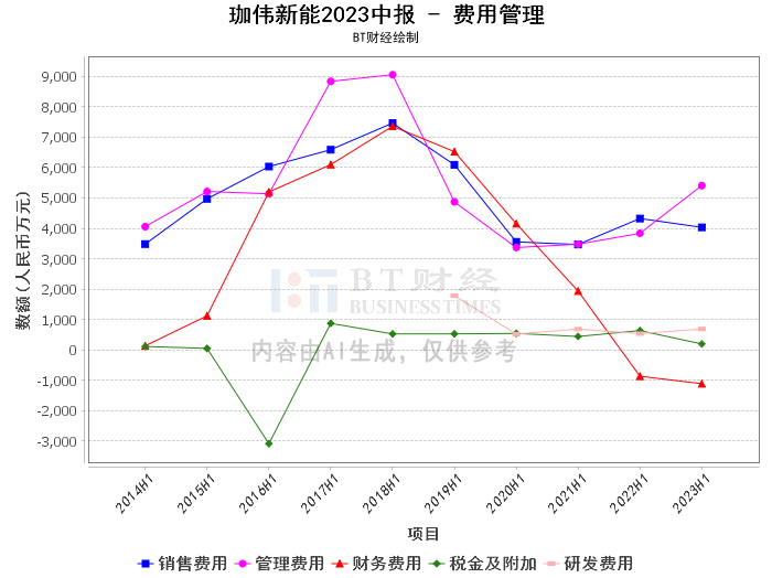 从2023年中报来看,珈伟新能的营业收入同比下降7.36%,主要原因是光伏照明业务收入减少。营业成本同比下降9.84%,随着营业收入的减少,销售费用也同比下降6.70%。管理费用同比增加40.98%,主要是本期股权激励费用、人工支出增加。财务费用同比下降28.55%,主要是汇兑收益增加。所得税费用同比增加551.98%,主要是子公司利润增加。研发投入同比增加28.20%,主要是研发人工支出增加。