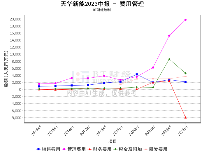在2023年的中报中,天华新能的营业成本同比增加了140.59%,主要原因是报告期内锂精矿采购价格大幅提高,制造成本相应增高。财务费用同比增减为-423.24%,主要原因是报告期内利息收入大幅增长。所得税费用同比增减为-64.90%,主要原因是报告期内实现的利润总额下降,应纳税所得额相应减少。