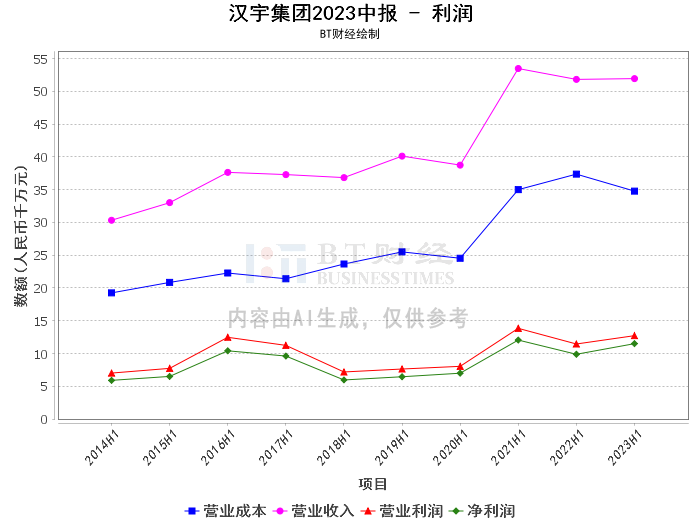 从2023年中报来看,汉宇集团的经营状况稳健,财务状况良好。营业收入在本报告期为5.2亿元,与上年同期的5.18亿元相比,基本持平。营业利润为1.27亿元,较上年同期的1.14亿元有所增加。净利润为1.15亿元,较上年同期的9.88千万元大幅增加。这些数据显示,公司的盈利能力在持续提升。