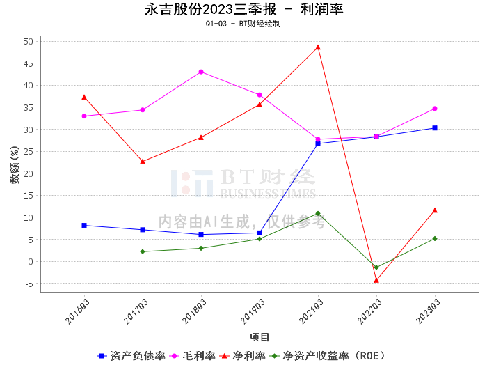 在盈利能力方面,永吉股份的表现也十分亮眼。公司的毛利率从上年同期的28.36%提升到年初至本报告期末的34.7%,净利率也从上年同期的-4.28%提升到年初至本报告期末的11.61%。这表明公司的盈利能力有了显著提升。同时,公司的净资产收益率(ROE)也从上年度末的-1.37%提升到本报告期末的5.18%,这进一步证实了公司盈利能力的提升。