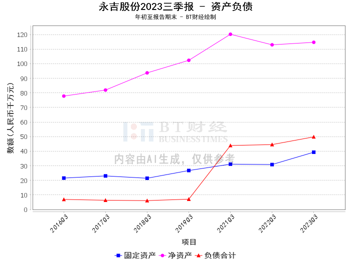 根据永吉股份2023年三季报,该公司资产总计16.45亿元,相比上年度末的17.6亿元有所减少。负债合计4.98亿元,较上年度末的5.78亿元也有所下降。这表明公司在资产和负债管理方面有所改善。同时,公司的资产负债率从上年度末的32.84%下降到本报告期末的30.28%,这意味着公司的财务结构更为稳健。