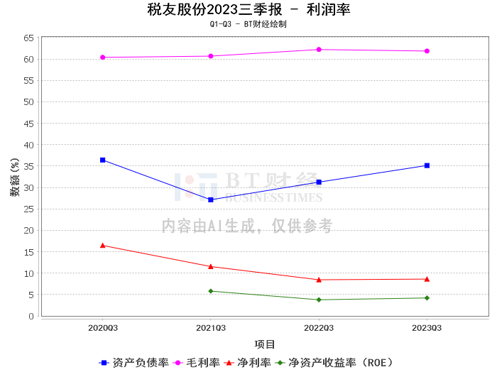综合来看,税友股份2023年三季报显示,公司在数字政务和企业数字化服务领域的表现突出,盈利能力有所提升,资产负债状况稳定。然而,毛利率略有下滑,需要关注公司的成本控制情况。总体来说,税友股份的经营状况良好,具有较强的市场竞争力。对于投资者来说,可以适当关注该公司的后续发展情况。