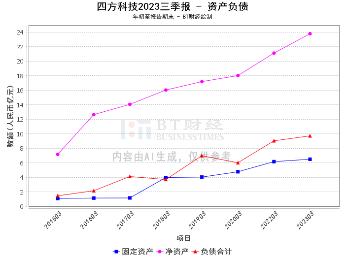 根据2023年三季度财报,四方科技的资产总计为33.51亿元,相较于上年度末的32.08亿元有所增长。负债合计为9.71亿元,相比上年度末的10.02亿元略有下降。净资产为23.79亿元,较上年度末的22.05亿元有所提升。这表明公司的资产状况良好,负债规模得到控制,净资产增长表明公司的内在价值提升。
