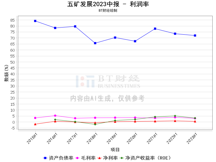 总的来说,五矿发展在2023年上半年面临了一些挑战,但公司的净资产增长显著,资产负债率有所下降,显示出公司的财务管理和运营能力。然而,公司的毛利率和净利率下滑,以及营业收入和营业利润的减少,表明公司在市场环境变化和行业竞争加剧的情况下,需要进一步提升其业务运营和管理效率。对于投资者来说,应密切关注公司未来的业务发展和市场动态,以便做出明智的投资决策。