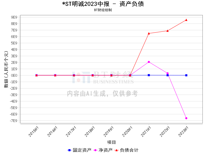 截至2023年6月30日,*ST明诚的总资产为192,589.53万元,同比减少43.56%。这主要是由于其控股子公司香港明诚被香港高等法院裁定清盘,公司对其失去控制权。同时,公司的负债合计为85.71亿元,较期初的83.31亿元有所增加。这反映出公司的财务压力较大,资产负债率达到了445.06%,较期初的244.15%大幅上升。
