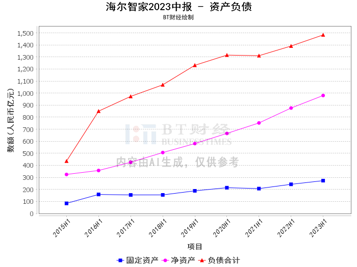 根据海尔智家2023年中报,公司的资产总计期末余额为2.46千亿元,相较于期初余额2.36千亿元有所增长。负债合计期末余额为1.48千亿元,略高于期初余额1.41千亿元。这表明公司在资产和负债方面都有所增长,资产增长的速度超过了负债,显示出公司的财务状况稳健。