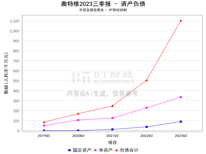 根据奥特维2023年三季度财报,公司的资产总计为1.44百亿元,相比上年度末的85.22亿元有所增长。负债合计为1.1百亿元,相比上年度末的59.33亿元也有所上升。这表明公司在扩大规模,增加投资的同时,负债也在增加。