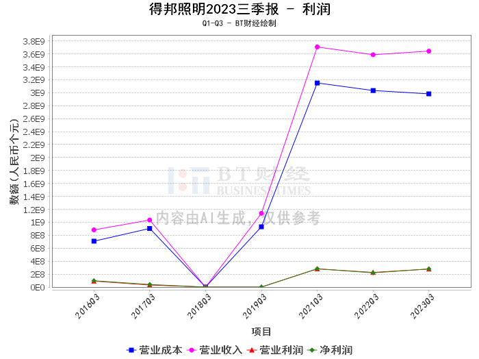 得邦照明(股票代码:603303)是一家专注于通用照明和车载零部件行业的综合性高新技术企业,其业务涵盖民用照明产品、商用照明产品和车载产品三大品类。2023年三季报显示,得邦照明在各项关键财务指标上表现亮眼。