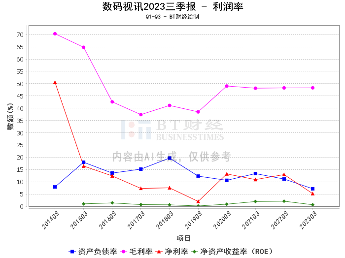 【BT财报瞬析】数码视讯2023三季报:净资产稳定,资产负债率下降,毛利率微涨,净利润有所下滑