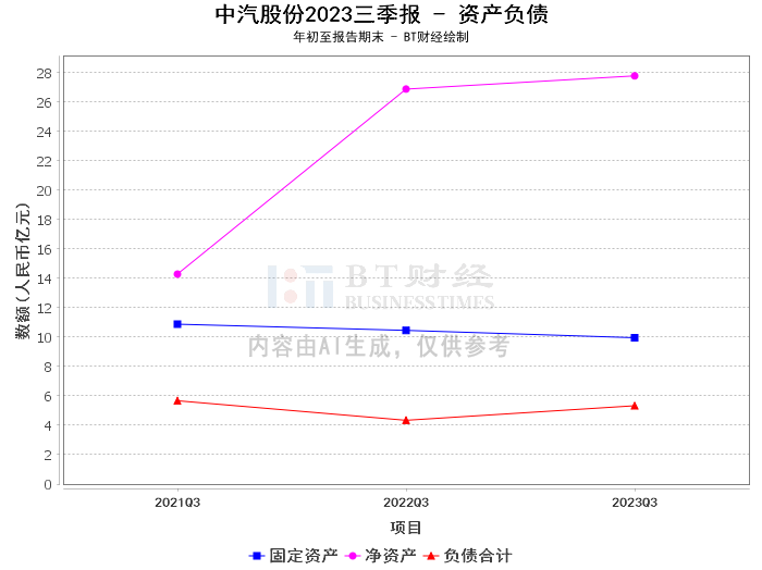 根据中汽股份2023年三季报,公司资产总计为33.12亿元,相较于上年度末的31.22亿元有所增长。负债合计为5.33亿元,较上年度末的3.95亿元有所上升。净资产为27.78亿元,相比上年度末的27.27亿元略有增长。这表明公司在财务管理上保持了稳健,资产规模持续扩大。