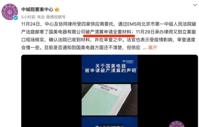 其实早在去年年底国美就传出了被申请破产清算的传闻,北京第一中级人民法院公告称,国美电器有限公司因为拖欠了供应商数百万元的货款还不上,被依法申请破产清算。已经启动了相关的审查流程。