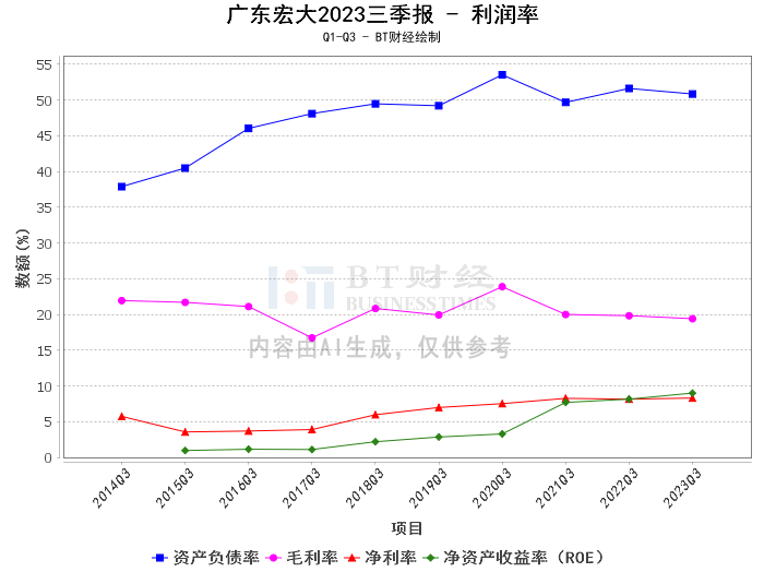 在盈利能力方面,广东宏大的毛利率为19.41%,较上年同期的19.83%略有下降。净利率为8.3%,较上年同期的8.15%有所提升。净资产收益率(ROE)为9%,较上年度末的8.15%有所提升。这表明公司的盈利能力在稳步提升。