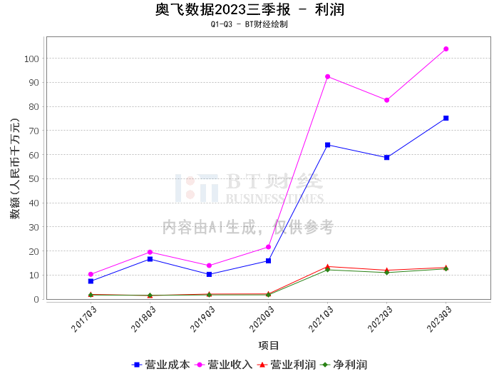 奥飞数据(股票代码:300738)是国内领先的互联网云计算与大数据基础服务综合解决方案提供商,致力于构建多云多网多端数字产业生态平台。根据其2023年三季度财报,公司的经营状况良好,各项财务指标表现稳健。