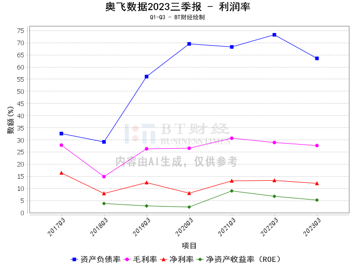 首先,从资产负债率来看,2023年三季度末,奥飞数据的资产负债率为63.58%,相较于上年度末的74.95%,下降了11.37个百分点,表明公司的财务结构进一步优化,偿债能力提高。