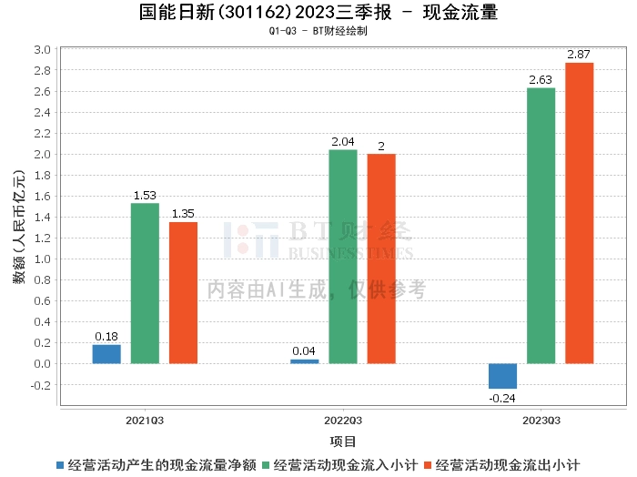 总的来说,国能日新2023年三季度的经营状况良好,资产规模稳步增长,负债得到良好控制,营业收入和净利润都有显著增长,尽管经营活动产生的现金流量净额有所下降,但经营活动的现金流入和流出都有所增加,显示出公司的经营活动仍然活跃。