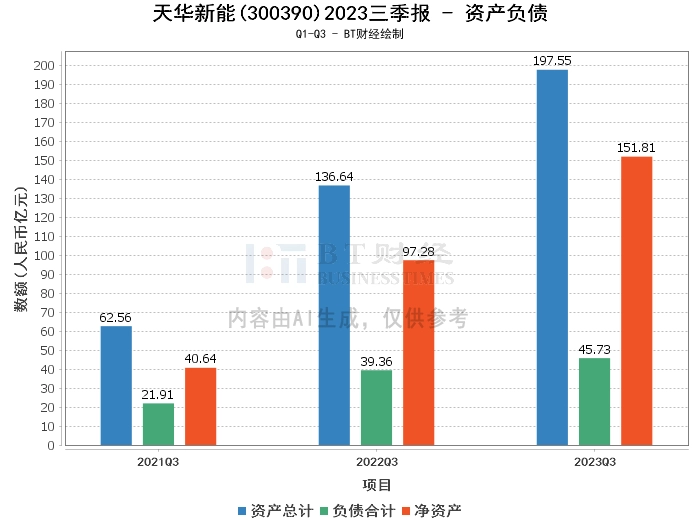 从资产负债方面看,天华新能2023年三季度的总资产为197.55亿元,相比上年度末的202.67亿元有所下降。负债总额为45.73亿元,较上年度末的61.95亿元大幅减少,资产负债率也从30.57%下降到了23.15%,显示出公司的负债状况有所改善。净资产为151.81亿元,较上年度末的140.72亿元有所增长。