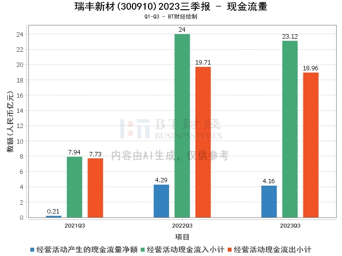 在现金流量方面,公司2023年三季度经营活动产生的现金流量净额为4.16亿元,较上年同期的4.29亿元略有下降。经营活动现金流入小计为23.12亿元,较上年同期的24亿元略有下降。经营活动现金流出小计为18.96亿元,较上年同期的19.71亿元略有下降。这些数据表明,公司的现金流量状况总体稳健。