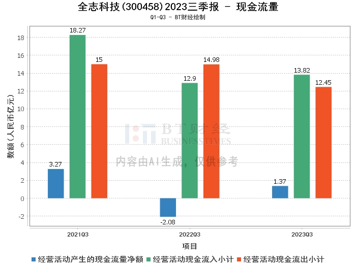 在现金流量方面,全志科技2023年三季度经营活动产生的现金流量净额为1.37亿元,较上年同期的-2.08亿元大幅提升。经营活动现金流入小计为13.82亿元,较上年同期的12.9亿元有所增加。经营活动现金流出小计为12.45亿元,较上年同期的14.98亿元有所减少。这些变动主要是由于报告期内销售商品、提供劳务收到的现金增加,购买商品、接受劳务支付的现金减少,以及支付其他与经营活动有关的现金增加所致。