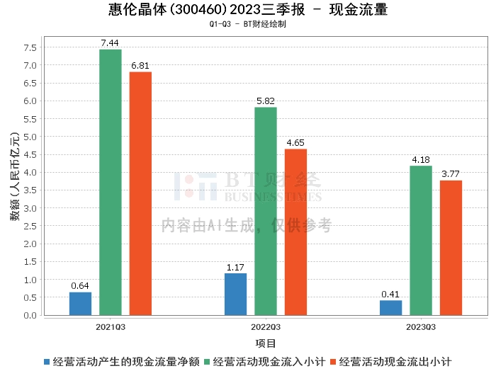 总的来看,惠伦晶体2023年三季度面临一些挑战,包括销售收入下降、成本增加、现金流量净额下降等,但公司积极应对,通过偿还借款、减少设备购买等方式控制负债,同时也在积极寻求新的增长点,以期在未来实现更好的业绩。