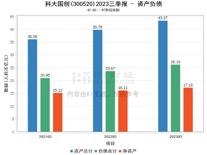 从资产负债方面看,科大国创2023年三季度末的总资产为43.37亿元,相比上年度末的40.57亿元有所增长。负债合计为26.19亿元,略高于上年度末的25.06亿元。公司的净资产为17.19亿元,较上年度末的15.51亿元有所提升,资产负债率为60.38%,较上年度末的61.78%有所下降。