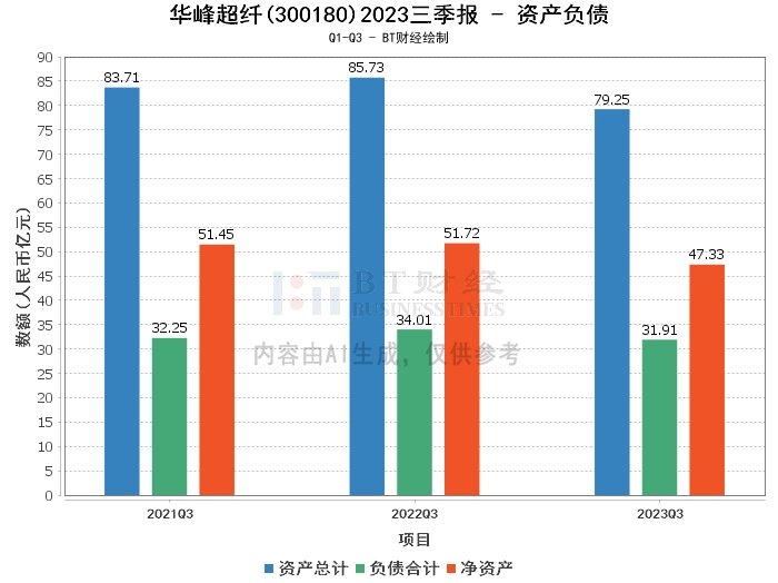 华峰超纤2023年三季度的财报显示,公司的总资产为79.25亿元,相比上年度末的79.9亿元略有下降。负债合计为31.91亿元,相比上年度末的32.29亿元也有所减少。公司的净资产为47.33亿元,较上年度末的47.61亿元有所减少。资产负债率为40.27%,较上年度末的40.42%有所下降。这些数据显示,公司的负债规模在控制之中,但总资产和净资产的减少可能反映出公司的经营压力。