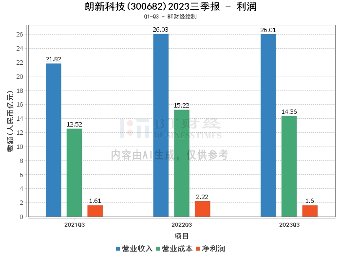 在利润方面,朗新科技2023年三季度的营业收入为26.01亿元,与上年同期的26.03亿元基本持平。营业成本为14.36亿元,较上年同期的15.22亿元有所下降。公司的毛利率由41.52%提高到44.78%,净利率则由8.54%降至6.16%。营业利润为1.63亿元,较上年同期的2.91亿元有所下降。净利润为1.6亿元,较上年同期的2.22亿元有所减少。