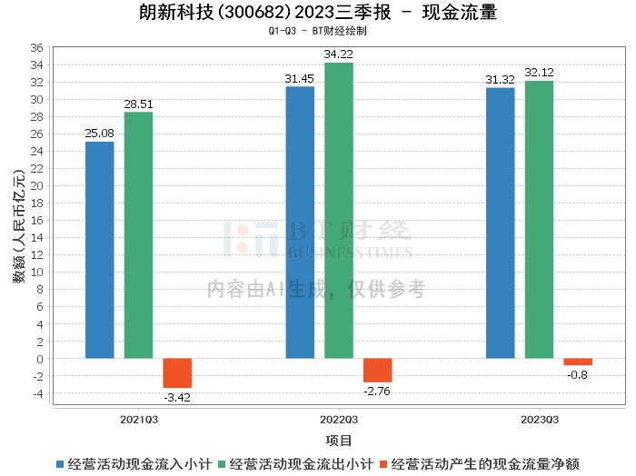 在现金流量方面,朗新科技2023年三季度经营活动产生的现金流入为31.32亿元,与上年同期的31.45亿元基本持平。经营活动产生的现金流出为32.12亿元,较上年同期的34.22亿元有所减少。这表明公司的现金流状况有所改善。主要是加快了营运资金的周转速度所致。