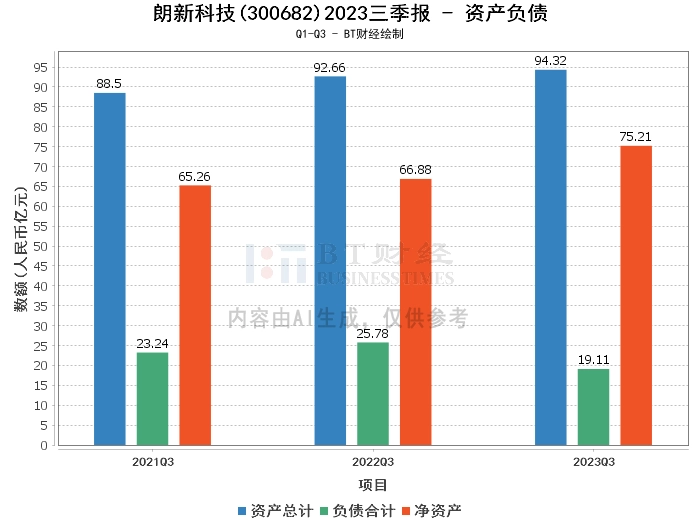 从资产负债方面来看,朗新科技2023年三季度末的总资产为94.32亿元,相比上年度末的97.8亿元有所下降。负债合计为19.11亿元,较上年度末的28.54亿元大幅减少,资产负债率从29.18%降至20.26%,显示出公司的负债结构得到了优化。净资产达到75.21亿元,较上年度末的69.26亿元有所增长。