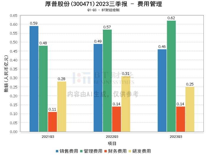 在利润方面,2023年三季度,厚普股份的营业收入为5.83亿元,相比上年同期的4.54亿元有所增长。营业成本为4.54亿元,相比上年同期的3.5亿元有所增长。毛利率为21.99%,相比上年同期的22.85%有所下降。这些数据显示出公司的销售收入在增加,但成本控制需要进一步加强。