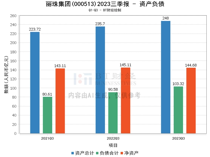 从资产负债方面来看,丽珠集团2023年三季度末的总资产为248亿元,与上年度末的248.65亿元相比略有下降。负债合计为103.32亿元,较上年度末的99.29亿元有所增加,资产负债率为41.66%,较上年度末的39.93%有所上升。这可能是由于公司在应对行业和市场挑战,提升经营管理和研发效率,加大数字化转型力度,强化产品竞争优势等方面的投入增加。