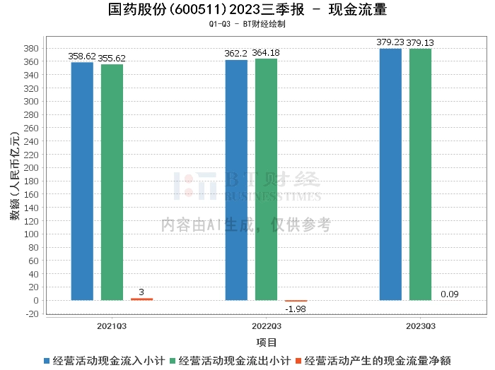 总的来看,国药股份2023年三季度的经营状况整体稳定,资产总计、营业收入、净利润均有所增长,现金流量净额显著改善。然而,公司的资产负债率略有上升,营业成本也有所增长,这些都是需要关注的地方。