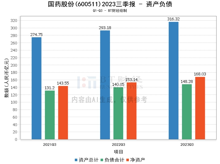 从财务数据上看,国药股份2023年三季度的总资产为316.32亿元,相比上年度末的296.09亿元有所增长。负债合计为148.28亿元,较上年度末的137.5亿元有所上升。净资产为168.03亿元,较上年度末的158.59亿元有所提升。资产负债率为46.88%,略高于上年度末的46.44%。