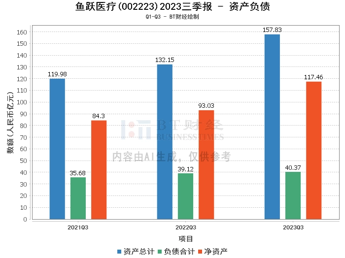从资产负债方面看,2023年三季度,鱼跃医疗的总资产达到157.83亿元,相较于上年度末的151.06亿元有所增长。负债总额为40.37亿元,较上年度末的50.39亿元有所下降。公司的净资产为117.46亿元,较上年度末的100.66亿元有所提升。资产负债率为25.58%,较上年度末的33.36%有所降低。这表明公司的财务状况稳健,资产负债结构良好。