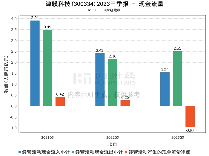 综合来看,津膜科技2023年三季度的经营状况面临一定的压力。虽然公司的资产负债率有所下降,但是营业收入和净利润都出现了下滑。此外,公司的现金流量净额也出现了较大的下降。