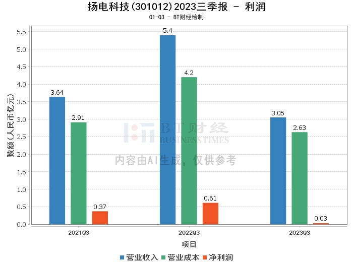 【BT财报瞬析】扬电科技2023三季报:资产总计增长43.92%,净利润下降95.48%