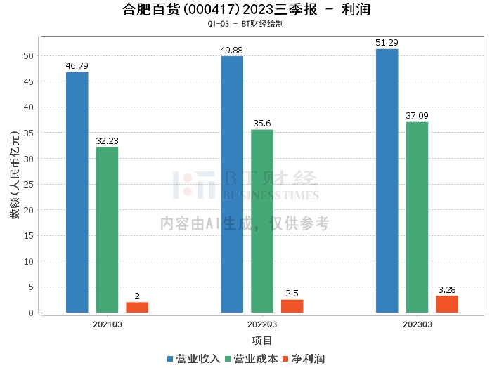 【BT财报瞬析】合肥百货2023三季报:净利润同比增长31.99%,资产总计增长3.57%