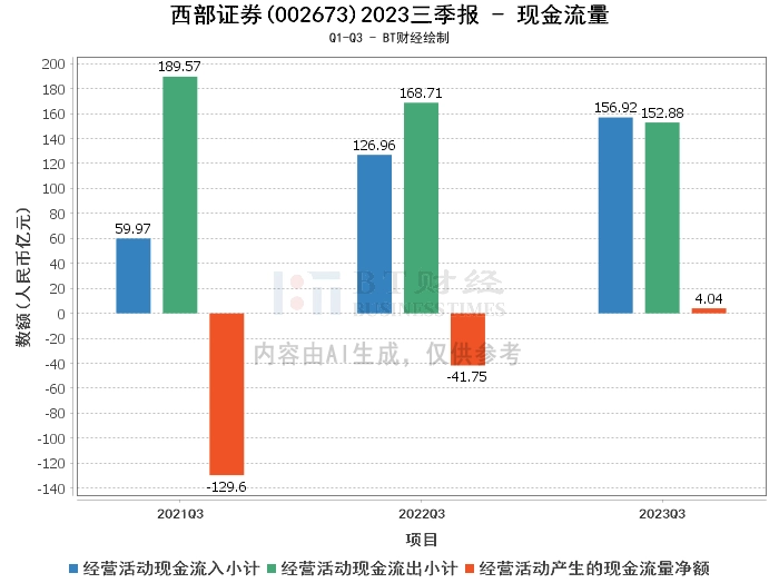 总的来看,西部证券2023年三季度的经营状况良好,资产负债率下降,净利润增长显著,现金流量状况也有所改善。这些都表明公司的经营管理能力和盈利能力有所提升。
