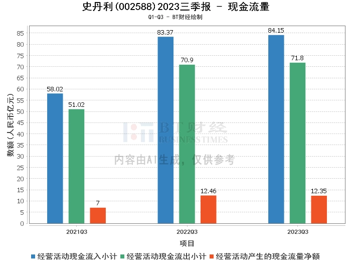 从现金流量来看,史丹利公司的经营活动产生的现金流量净额在年初至本报告期末为12.35亿元,相比上年同期的12.46亿元略有下降。经营活动现金流入小计在年初至本报告期末为84.15亿元,相比上年同期的83.37亿元有所增长。经营活动现金流出小计在年初至本报告期末为71.8亿元,相比上年同期的70.9亿元有所增长。
