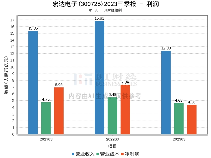 在利润方面,年初至本报告期末,宏达电子的营业收入为12.38亿元,较上年同期的16.81亿元有所下滑。营业成本为4.63亿元,较上年同期的5.48亿元有所减少。净利润为4.36亿元,较上年同期的7.34亿元有所下降。这些数据反映出公司在营业收入和净利润方面面临一定的压力。