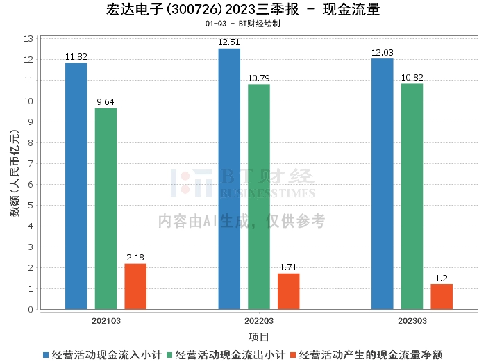 在现金流量方面,年初至本报告期末,宏达电子经营活动产生的现金流量净额为1.2亿元,较上年同期的1.71亿元有所下降。经营活动现金流入小计为12.03亿元,较上年同期的12.51亿元略有下降。经营活动现金流出小计为10.82亿元,较上年同期的10.79亿元略有增长。这些数据反映出公司的现金流量管理存在一定的挑战。