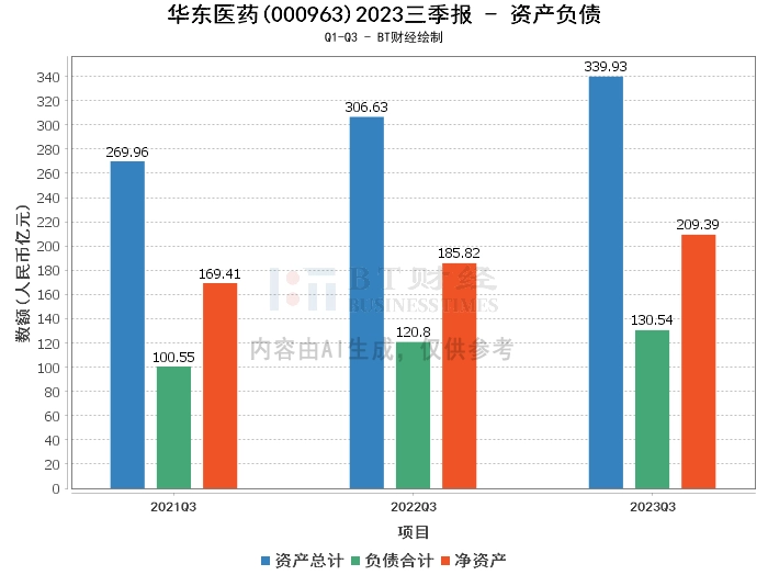 从资产负债方面看,华东医药2023年三季度的总资产为339.93亿元,相比上年度末的311.92亿元增长了8.98%。负债合计为130.54亿元,较上年度末的120.16亿元增长了8.64%。净资产为209.39亿元,较上年度末的191.76亿元增长了9.19%。资产负债率为38.4%,较上年度末的38.52%略有下降。这些数据显示,公司的资产规模在稳步增长,负债规模控制得较好,整体财务状况稳健。